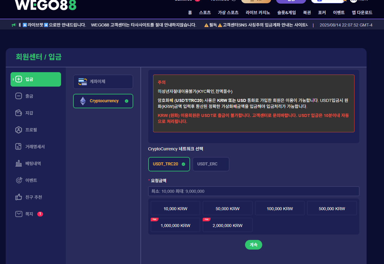 Wego88 가입주소 및 입금,출금 방법